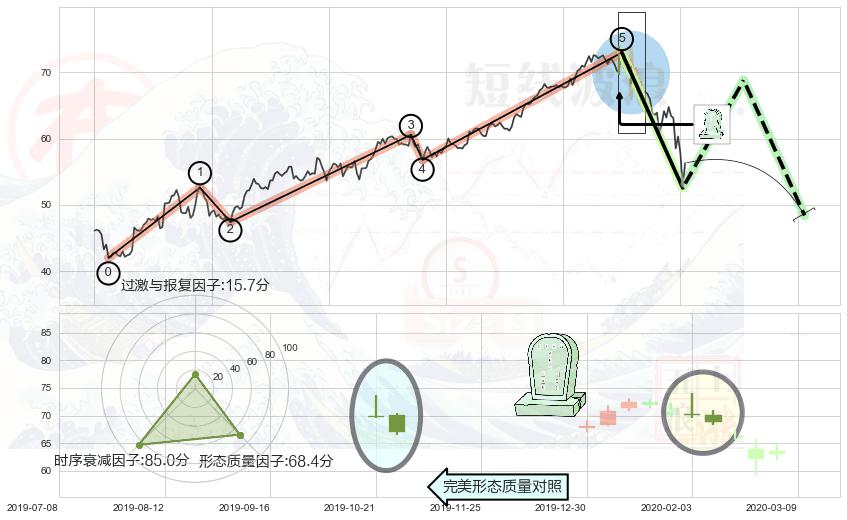 ➢ 🕰 价格走势在2020-03-06至2020-03-09期间形成吊颈线(上吊线),残存影响值:-4.49