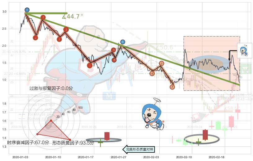 从2020-02-20至2020-03-13,共包含17个交易日,阶段股价下跌-59.68%,阶段股价变动位移路程比: 1 : 1.1