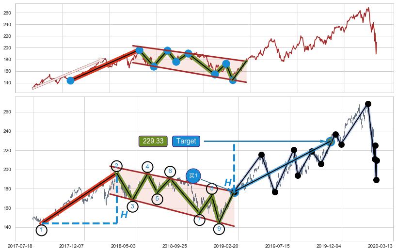 ➣ 最小中继整理涨幅→𝐇: 52.52 (𝐇旗杆的长度:旗杆起点→顶点)