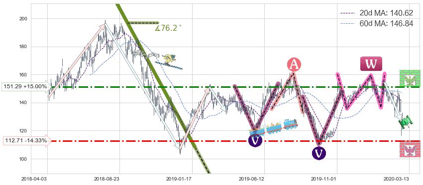 ♘ 阻力价格位151.29,可信任强度57.78%,距离最后交易2020-03-13形成的收盘价格131.56相差 +15.00%