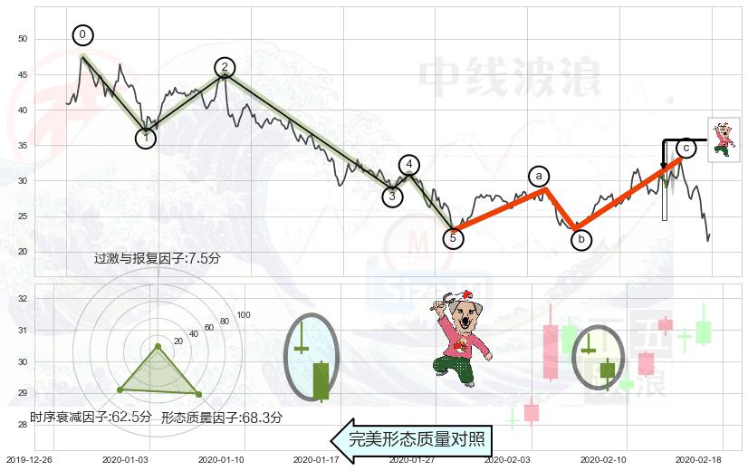 ➢ 顶部尽头线(下山虎) 🔜 波浪理论c点反弹终止反转下跌 综合量化分数:48.80 【中性】