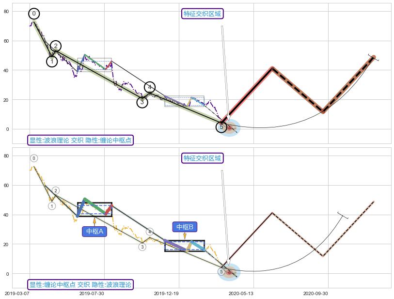 ➢ 波浪理论与缠论中枢点信号事件周期长度级别相同,同周期信号事件