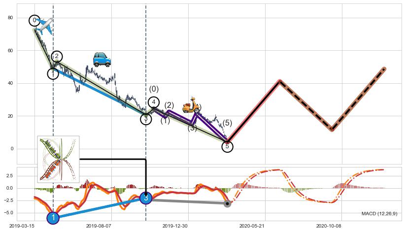 ➣ 波浪理论:猜想即将止跌 → 上涨 →【拐点】浪5临近 → 大趋势均值回复