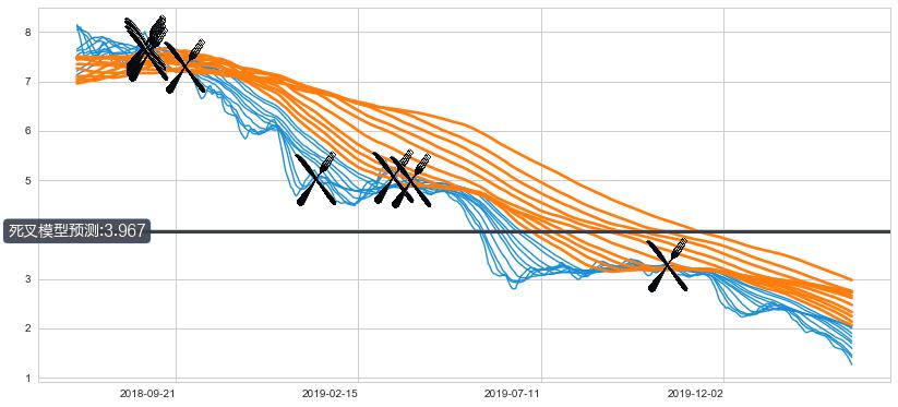 📉 多条均线基于【死叉历史模型】预测最低波谷价格的平均值: 3.967
