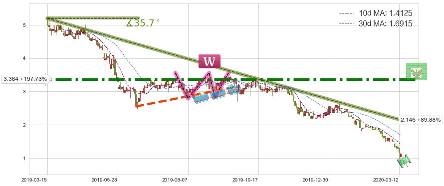 ♘ 阻力价格位3.364,可信任强度90.72%,距离最后交易2020-03-13形成的收盘价格1.1300相差 +197.73%