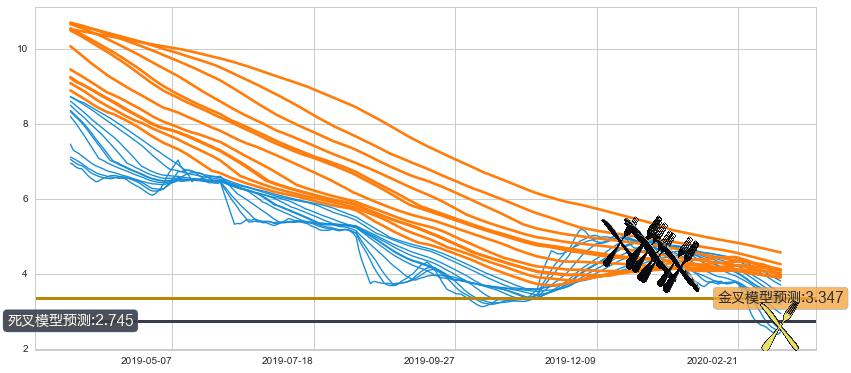 ➣ 60小时均线于(2020-01-09: 4.38)形成【死叉】基于【死叉历史模型】预测死叉后最低波谷价格: 3.076, 死叉后最低价格2.320,已经下跌超出预测最低波谷价格, 预期反弹
