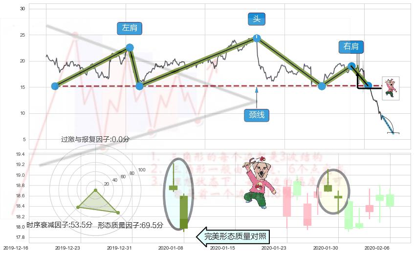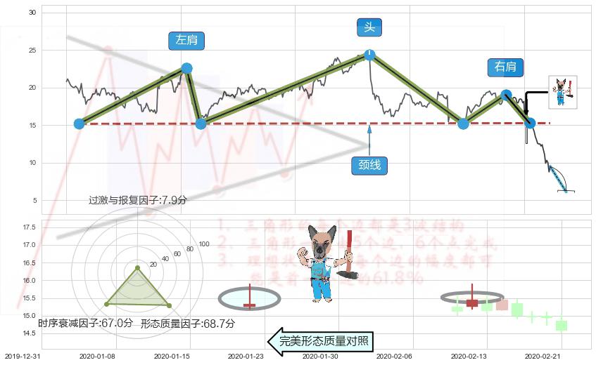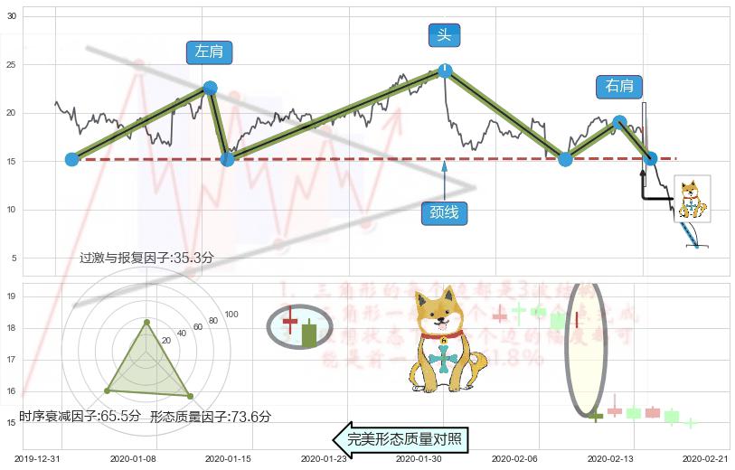 ➢ 【卖1】: 激进型 卖点→(2020-02-18: 15.25 )形成突破头肩顶【反转】形态