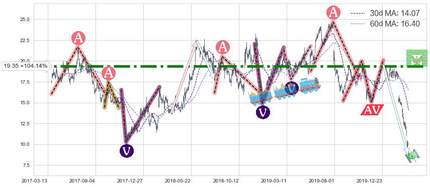 ♘ 阻力价格位19.35,可信任强度99.00%,距离最后交易2020-03-13形成的收盘价格9.48相差 +104.14%