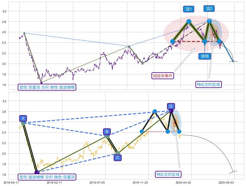 ➢ 双重顶属【短级别信号事件】谐波蝴蝶属【长级别信号事件】长短周期组合信号事件, 短长事件长度比25.51%