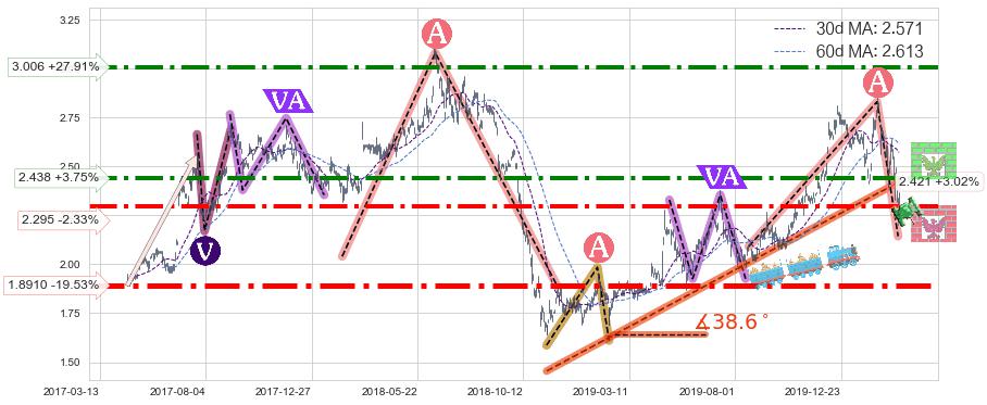 ➣ 【已确认突破】最后价格:2.350与最小【反转】第一目标价格→(2020-04-16: 2.030 )相较: 下跌空间【较大】