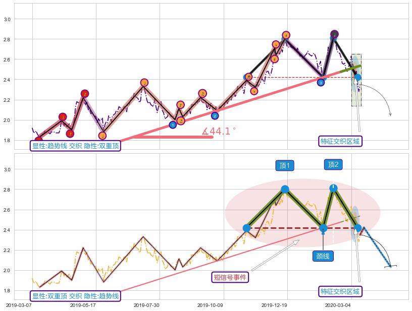 ➢ 双重顶属【短级别信号事件】趋势线属【长级别信号事件】长短周期组合信号事件, 短长事件长度比35.77%