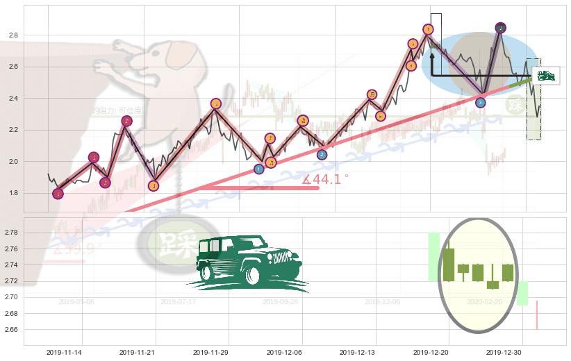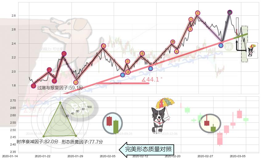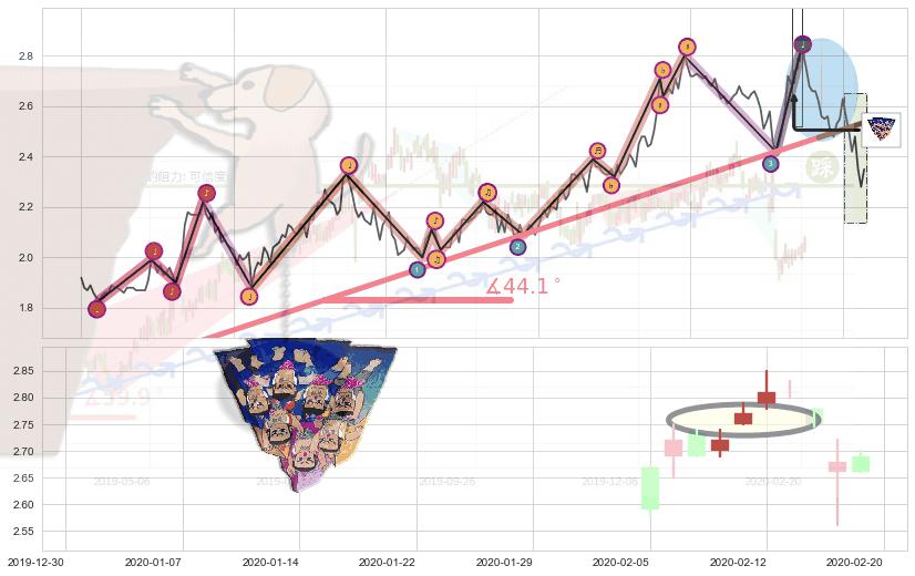 ➢ 2019-03-15-2020-02-21上升趋势存在反转[风险],其原上升趋势的支撑位(2.535)已破位[强阻力信号],原上升趋势角度: 44.1˚