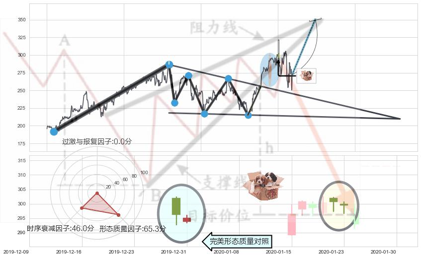 ➢ 🕰 价格走势在2020-01-16至2020-01-21期间形成两红夹一黑,残存影响值:1.85