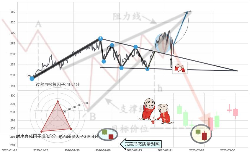 ➢ 早晨之星(黎明之星) 🔜 降楔型阻力突破转换支撑上涨 综合量化分数:53.28 【中性】