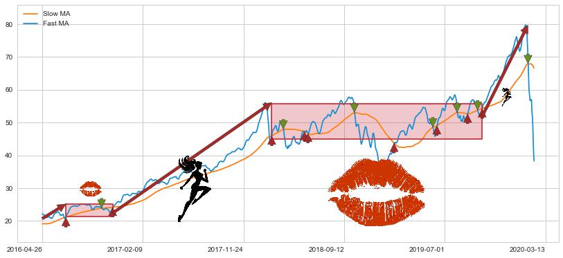 2018-02-15至2019-10-15 慢线与快线多次接触,存在上下穿越,有缠绕