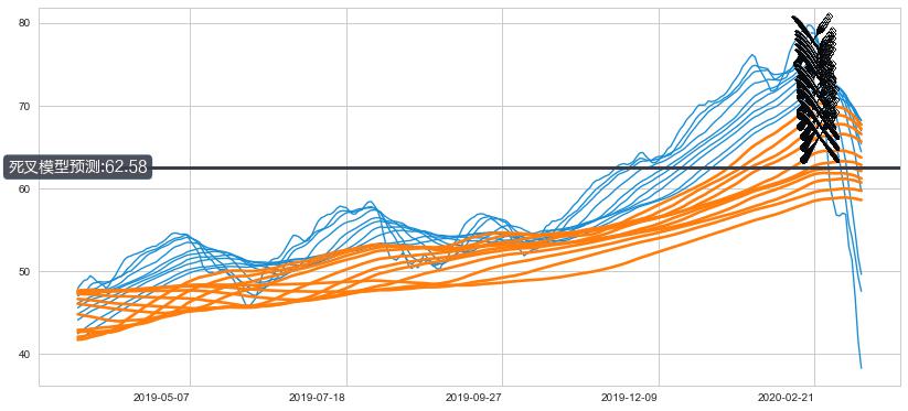 ➣ 80小时均线于(2020-02-24: 68.98)形成【死叉】基于【死叉历史模型】预测死叉后最低波谷价格: 60.41, 死叉后最低价格28.31,已经下跌超出预测最低波谷价格, 预期反弹