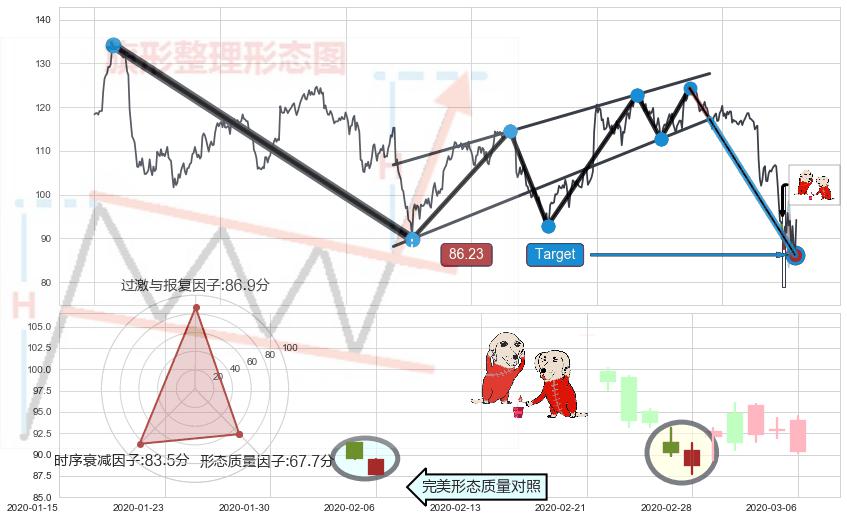 ➢ 【已达成】最小【整理】第一目标价格→(2020-03-12: 86.23 ), 后续继续【整理】下跌动力依然存在,下跌空间适中