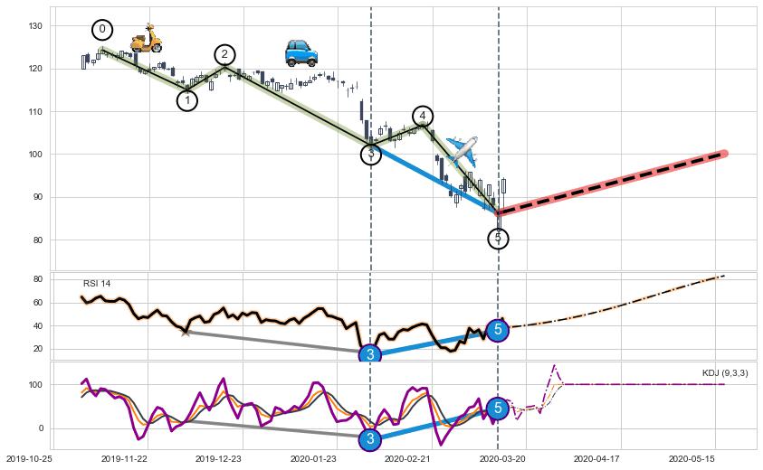 ➢ 第三,五驱动浪端点:【KDJ】走势出现【常规背离 & 反转信号】背离程度99.00%,背离夹角角度79.5˚,背离程度较大