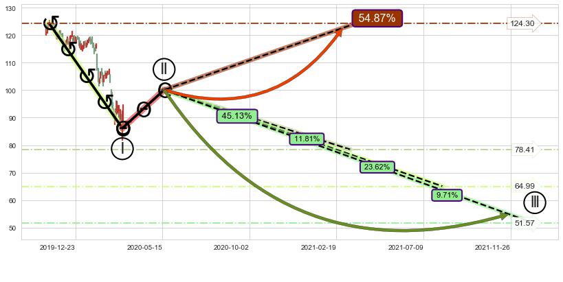 ➢ 高概率大级别循环下跌浪被破坏,反转向上(突破5浪起点)概率54.87%