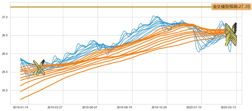 ➣ 160小时均线于(2020-03-12: 26.63)形成【金叉】基于【金叉历史模型】预测金叉后最高波峰价格: 27.62, 金叉后最高价格27.44,尚未达到预测最高波峰价格, 预期继续上涨