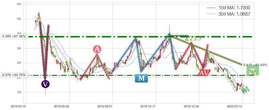 ♘ 阻力价格位3.395,可信任强度96.00%,距离最后交易2020-03-13形成的收盘价格1.7200相差 +97.36%
