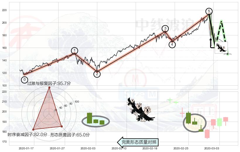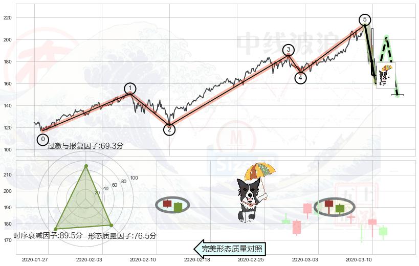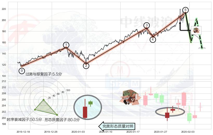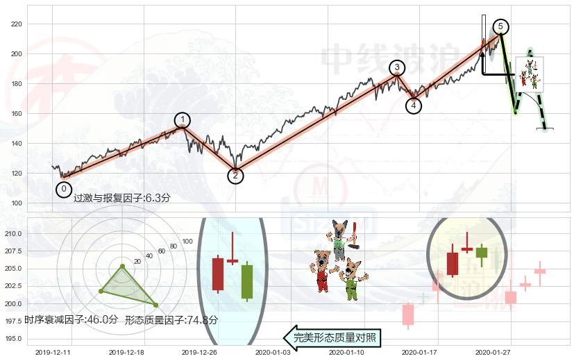 ➢ 顶部尽头线(下山虎) + 波浪理论上涨浪:浪5回调拐点信号叠加后【反向回撤率】中等,【看空】信号叠加【存续影响中等】
