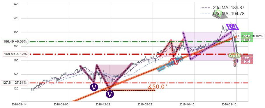 ♘ 阻力价格位186.49,可信任强度67.36%,距离最后交易2020-03-13形成的收盘价格175.83相差 +6.06%