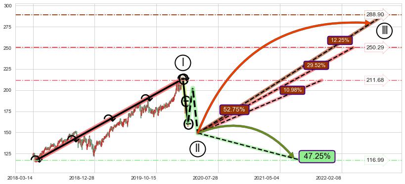 ➣ 循环浪继续向上【平均值】位置(2022-03-31, 250.29),匹配聚类样本比例55.97%, 可能性概率29.52%