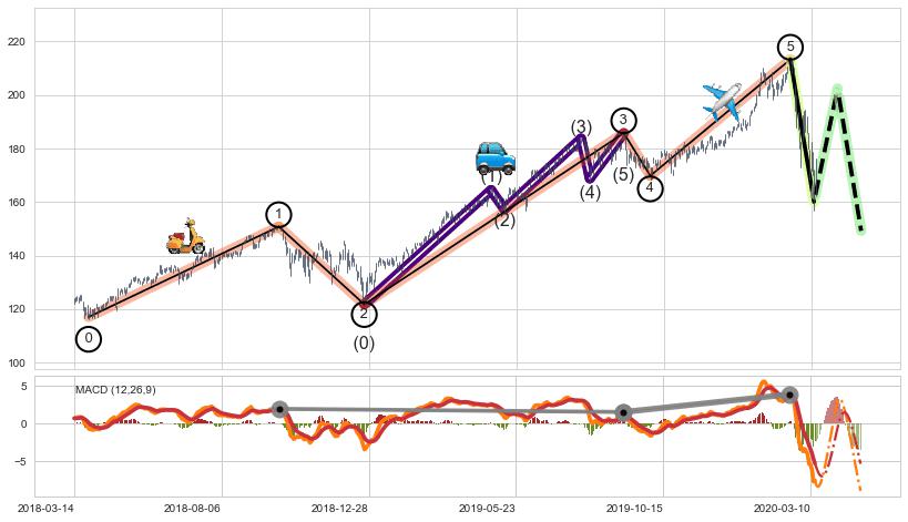 ➣ 波浪理论:猜想止涨 → 下跌 →【拐点】浪5已完成 → 大趋势均值回复