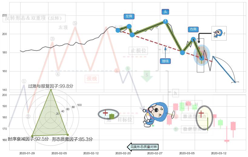 ➢ 【卖1】: 激进型 卖点→(2020-03-09: 174.02 )形成突破头肩顶【反转】形态