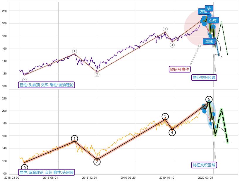 ➢ 头肩顶属【短级别信号事件】波浪理论属【长级别信号事件】长短周期组合信号事件, 短长事件长度比13.16%