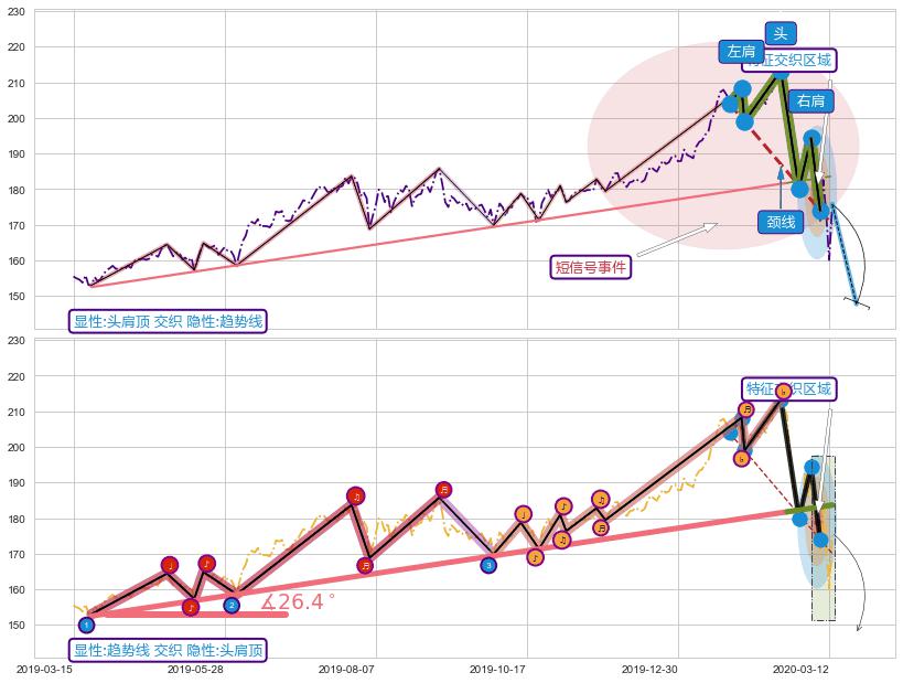 ➢ 头肩顶属【短级别信号事件】趋势线属【长级别信号事件】长短周期组合信号事件, 短长事件长度比26.97%