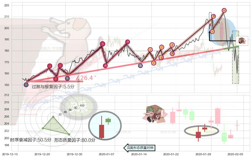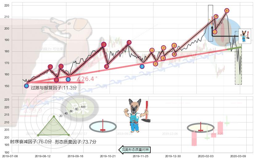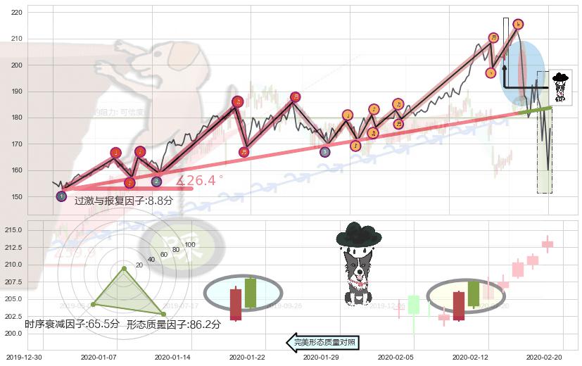 ➣ 2019-03-25-2020-02-21上升趋势存在反转[风险],其原上升趋势的支撑位(183.66)已破位[强阻力信号],原上升趋势角度: 26.4˚