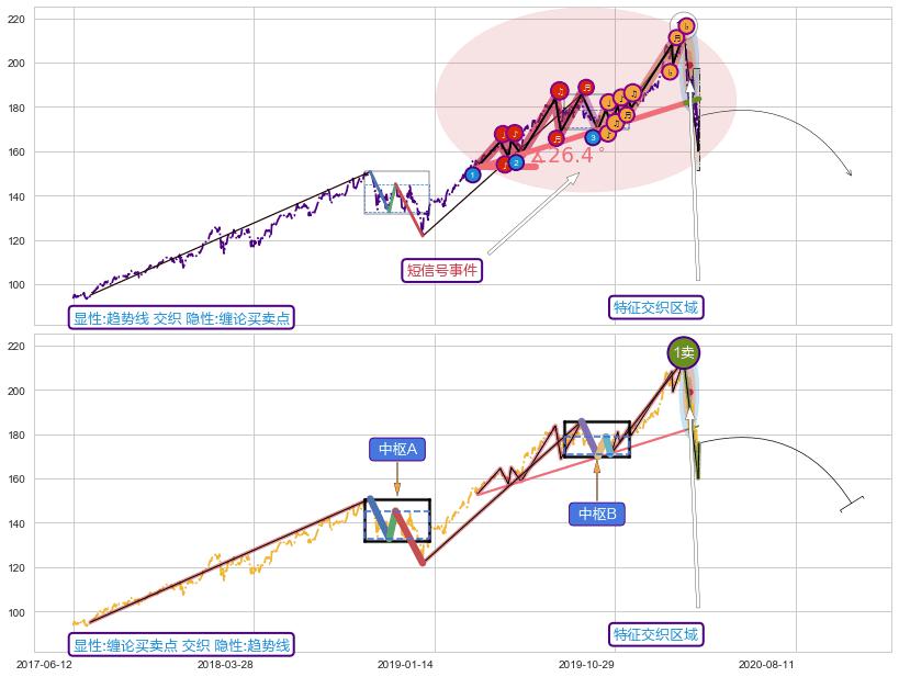 ➢ 趋势线属【短级别信号事件】缠论买卖点属【长级别信号事件】长短周期组合信号事件, 短长事件长度比35.70%