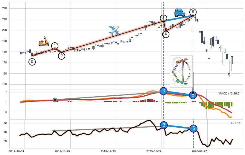 ➣ 看跌(高位倒锤头)流星线 + 波浪理论上涨浪:浪5回调拐点信号叠加后【反向回撤率】偏高,【看空】信号叠加【存续影响降权】
