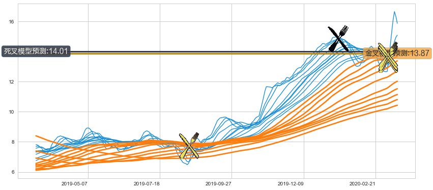 ➢ 10小时均线于(2020-01-13: 14.83)形成【死叉】基于【死叉历史模型】预测死叉后最低波谷价格: 14.01, 死叉后最低价格12.25,已经下跌超出预测最低波谷价格, 预期反弹