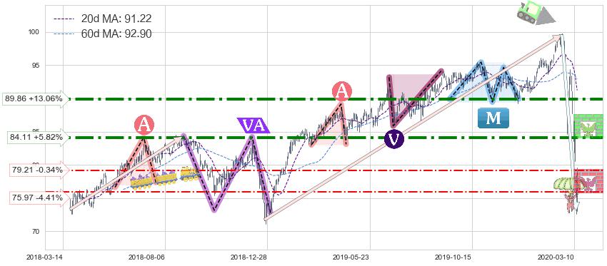 ♘ 阻力价格位84.11,可信任强度74.01%,距离最后交易2020-03-13形成的收盘价格79.48相差 +5.82%