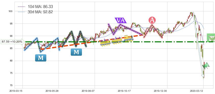 ➣ 【多空实力根本性转变→大方向抉择→空方占优】已在2020-03-09突破【支撑】颈线 87.11