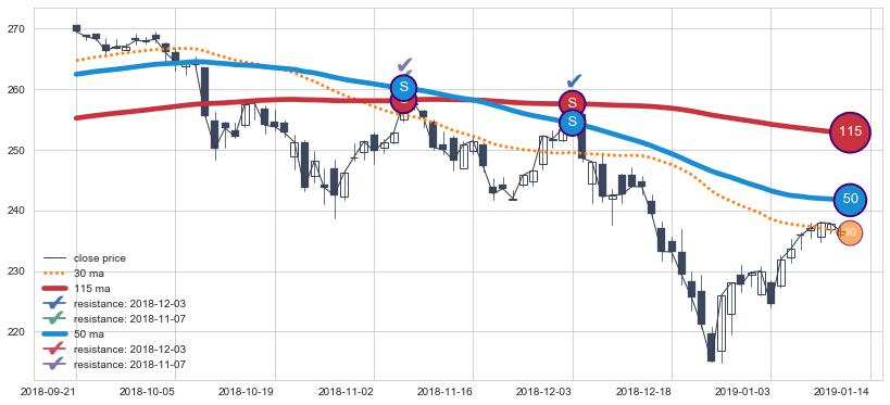➢ 最优均线组合共正确确认支撑阻力信号6处,正确确认率 66.67%