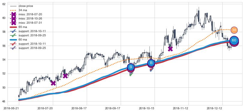 📝 多条均线形成死叉后走势最低价格达到: 51.20