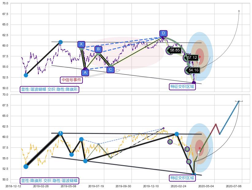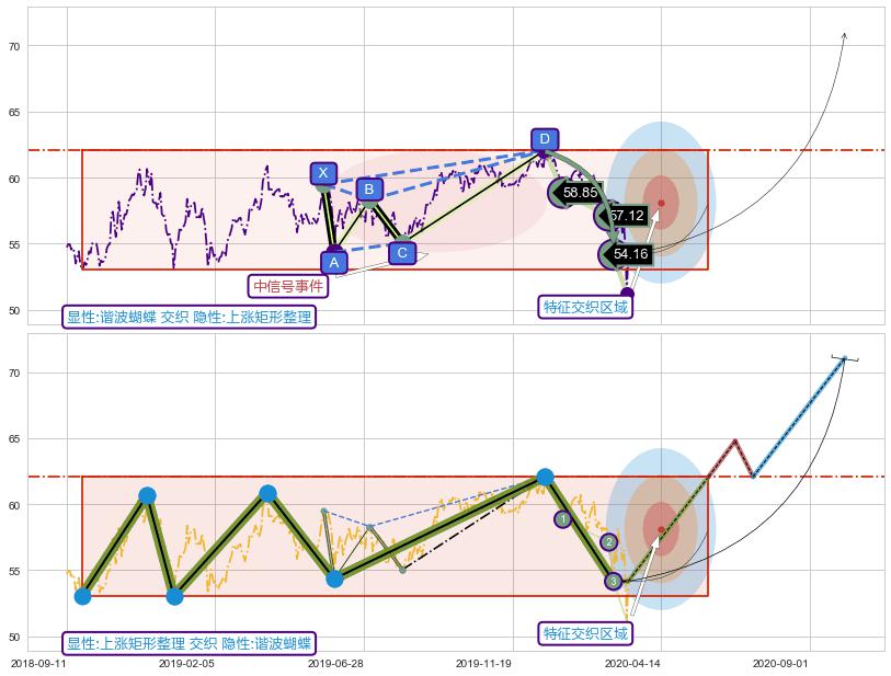 ➢ 谐波蝴蝶属【中级别信号事件】上涨矩形整理属【长级别信号事件】中长周期组合信号事件,中长事件长度比40.65%