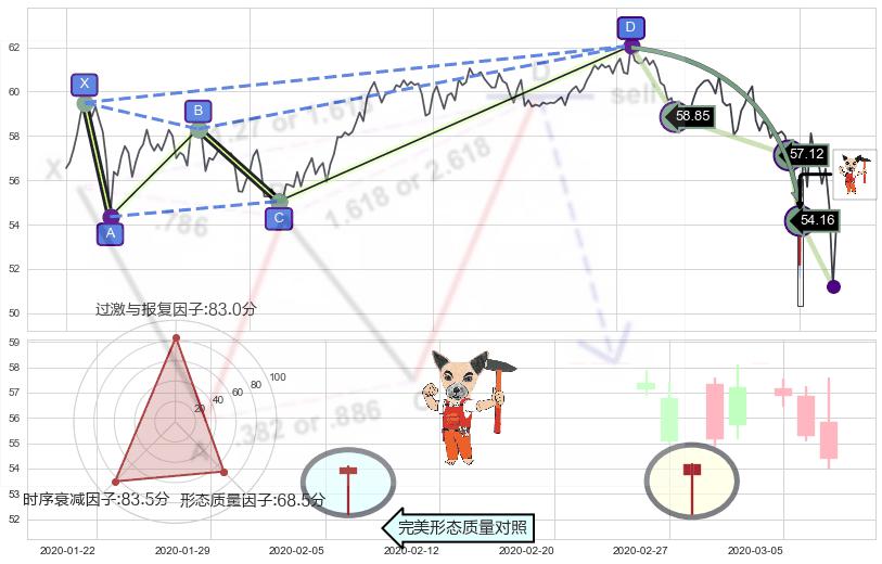 ➢ 锤头线(锤子线) 🔜 谐波蝴蝶目标❸拐点支撑上涨 综合量化分数:54.71 【偏多】