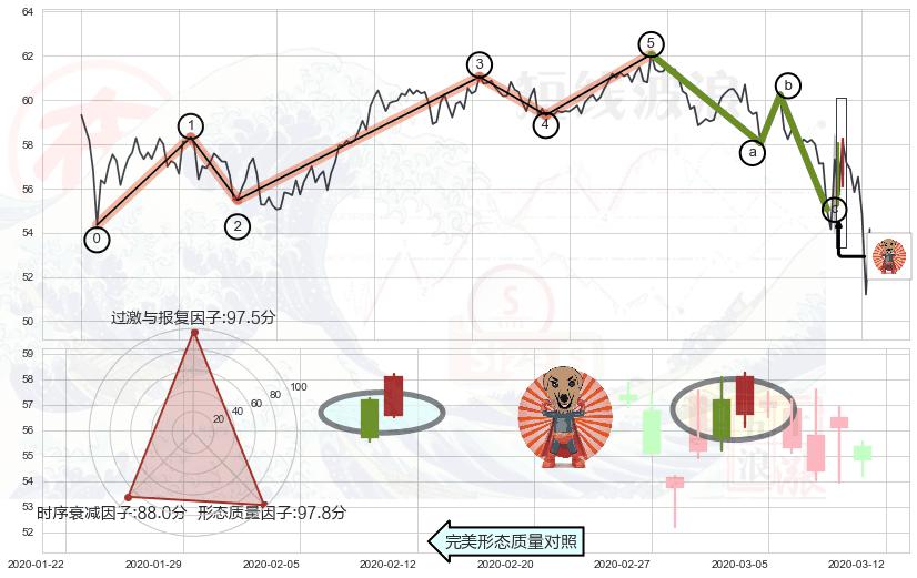 从2019-12-20至2020-03-13,共包含57个交易日,阶段股价下跌-12.58%,阶段股价变动位移路程比: 1 : 5,下跌趋势角度: 32.9