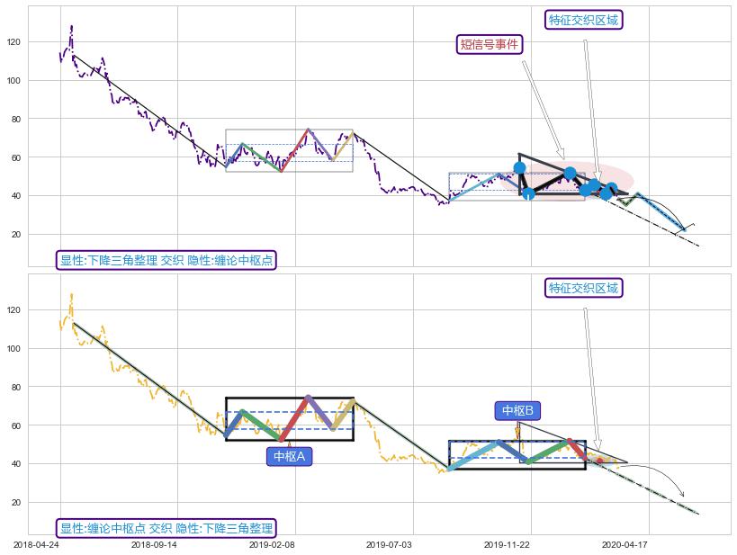 ➢ 下降三角整理属【短级别信号事件】缠论中枢点属【长级别信号事件】长短周期组合信号事件, 短长事件长度比17.67%