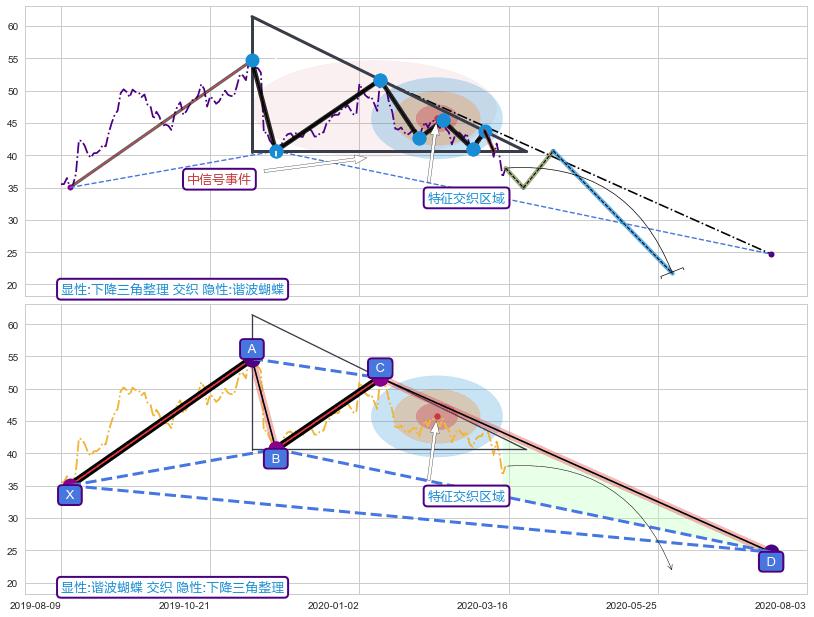 ➢ 下降三角整理属【中级别信号事件】谐波蝴蝶属【长级别信号事件】中长周期组合信号事件,中长事件长度比55.78%