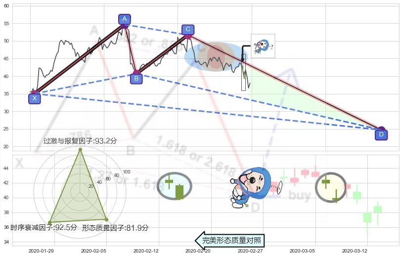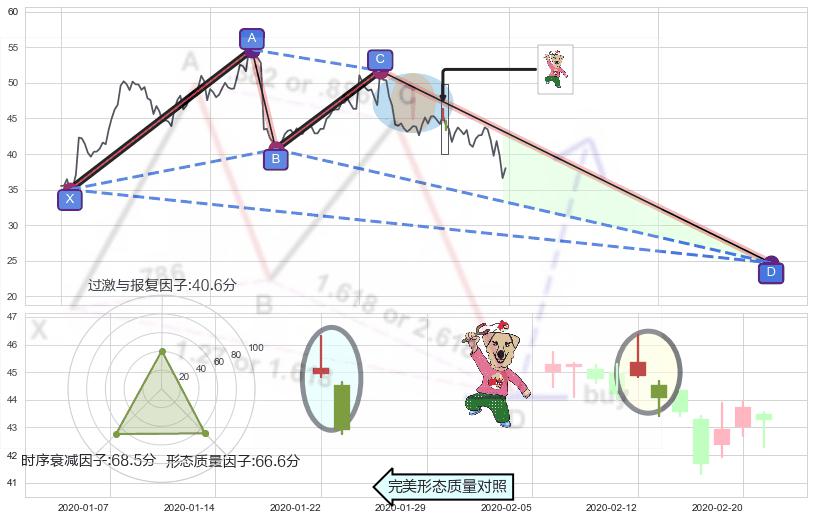 ➢ 下跌孤独十字星 🔜 谐波蝴蝶c拐点下跌阻力 综合量化分数:46.61 【中性】