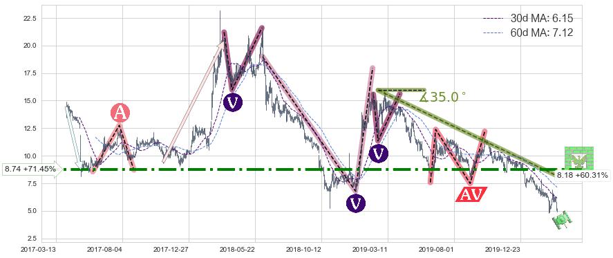 ♘ 阻力价格位8.74,可信任强度80.18%,距离最后交易2020-03-13形成的收盘价格5.10相差 +71.45%