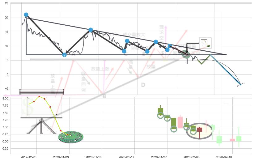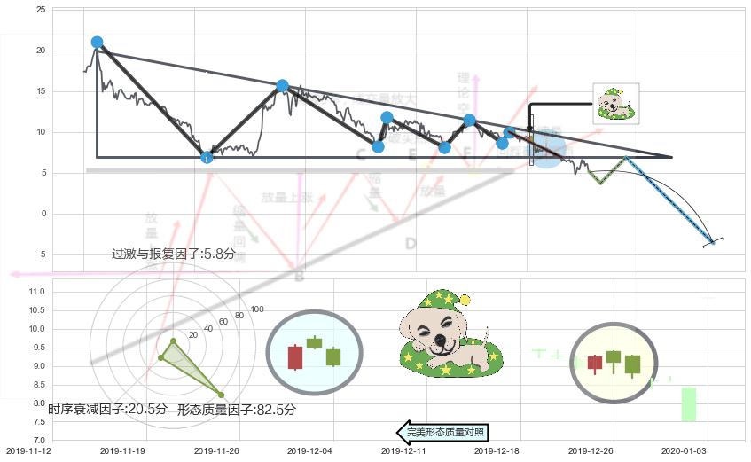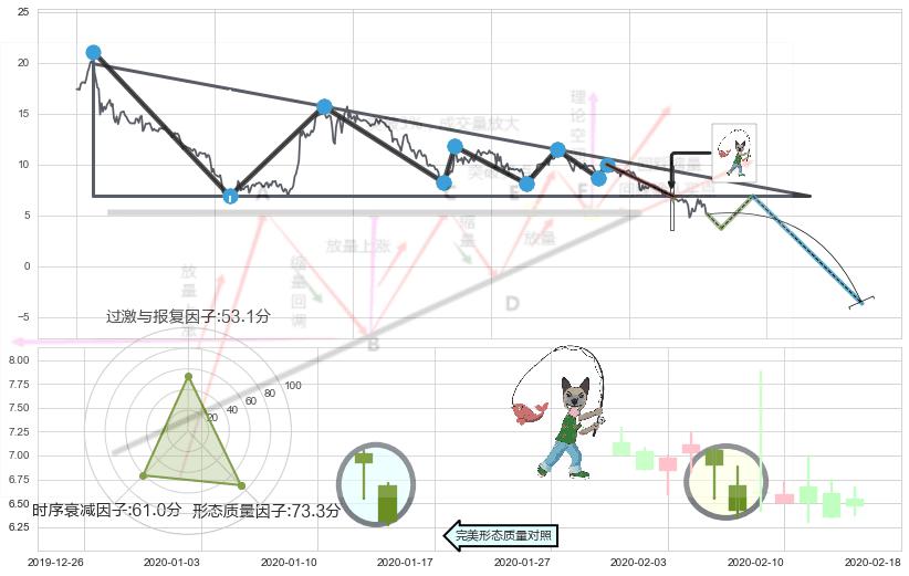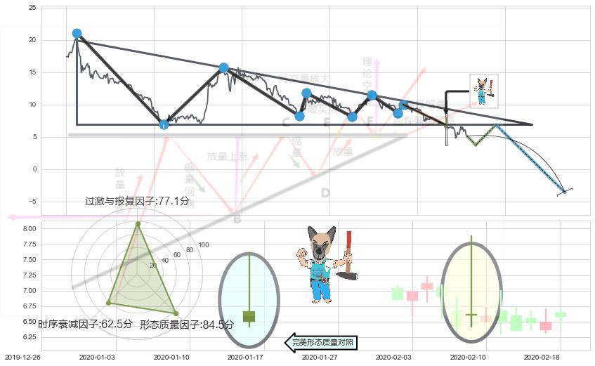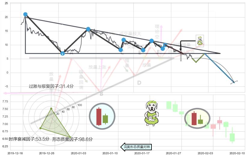 ➢ 【多方力量耗尽,空方打破攻守平衡点】下降三角形中继整理, 已在2020-02-06突破【支撑】颈线 6.87 →演变成下降通道