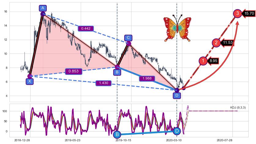 ➣ 已完成【蝴蝶】形态起点X: 2018-12-27, 终点D: 2020-02-25, 共292交易日