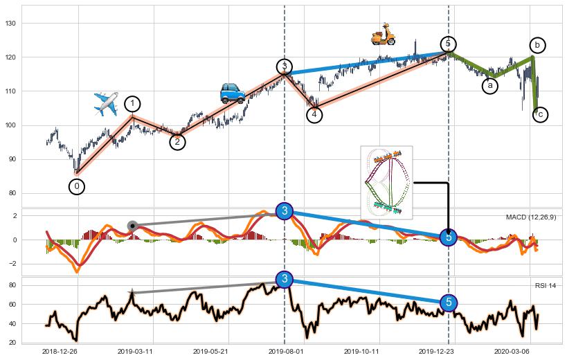 ➣ 第一, 三, 五浪上涨动能逐渐【衰弱变小】,趋势呈现不稳迹象
